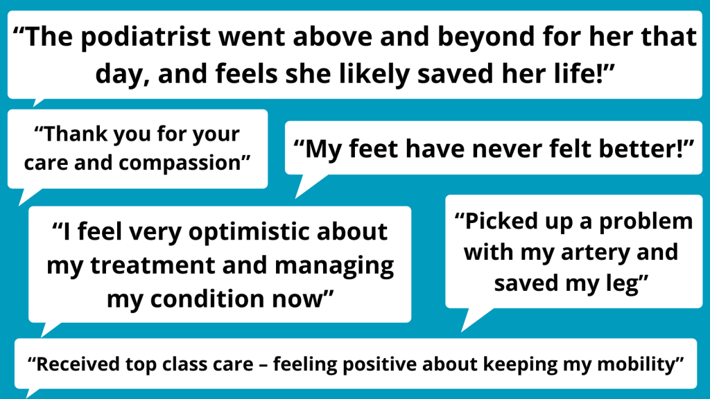 The MLCO podiatry team has podiatrist who specialise in diabetes, rheumatology, vascular, wound care and muscular skeletal conditions to assist patients. Furthermore, as a department we provide routine podiatry, footcare, insole provision and nail surgery. Check out the amazing feedback about the service below!