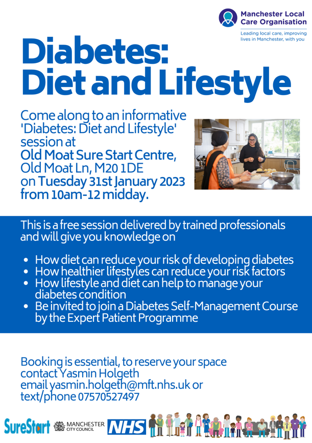 A free non-clinical course with face-to-face and virtual options for people who are aged 18 or over who live in Manchester and have Diabetes TYPE I OR 2, Pre-Diabetes and/or their carers.